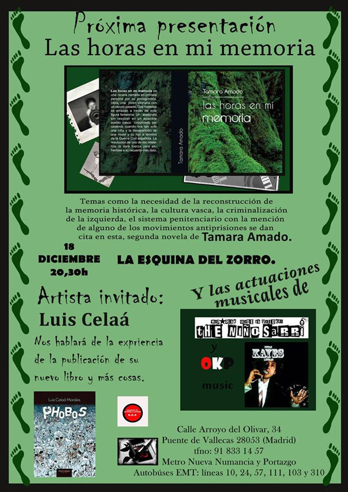 Presentación del libro "Las horas en mi memoria" de Tamara Amado. Invitado especial: Luis Celaá Morales, presentando su libro "Phobos"